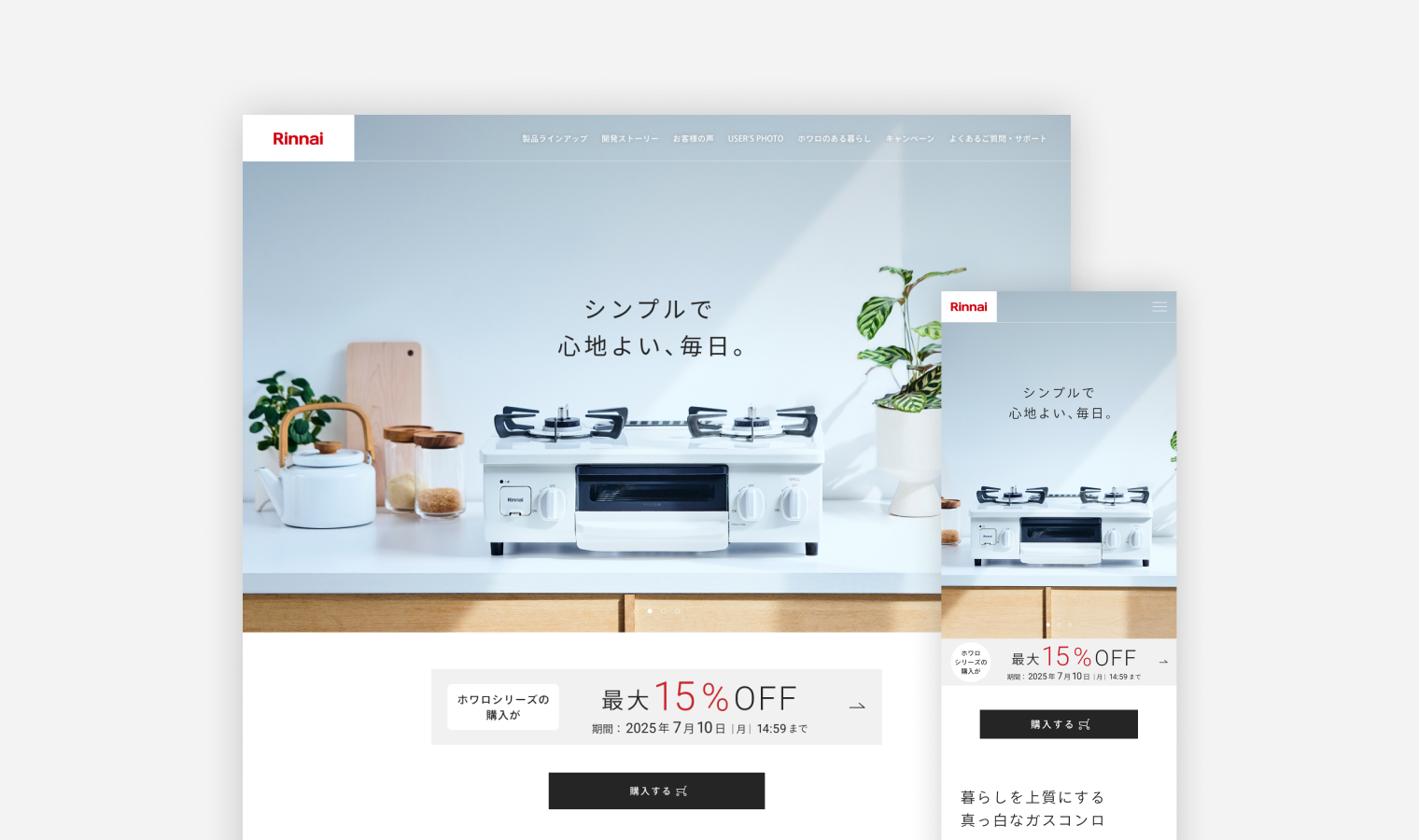2015年12月に発売を開始したHOWARO(ホワロ)は、何度かリニューアルをしているガステーブルコンロのロングセラー商品です。リニューアルをしているにも関わらず、サイト自体は、2018年からリニューアルしないまま、今回(2025年5月)の新たにリニューアルすることになり、これを機に、ブランドサイトも一新することになりました。このリニューアルは、HOWAROブランドに愛着のある社員みんなの念願でもありました。